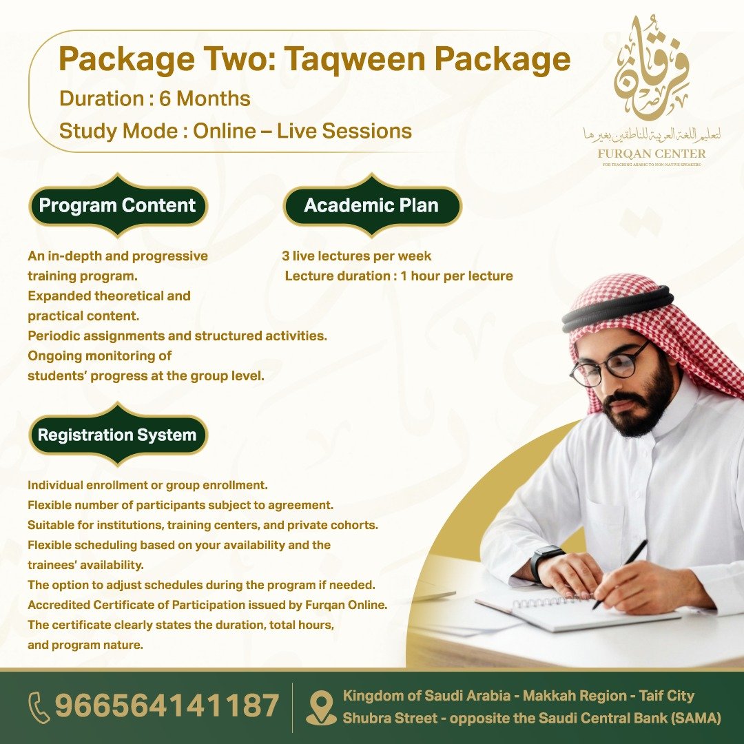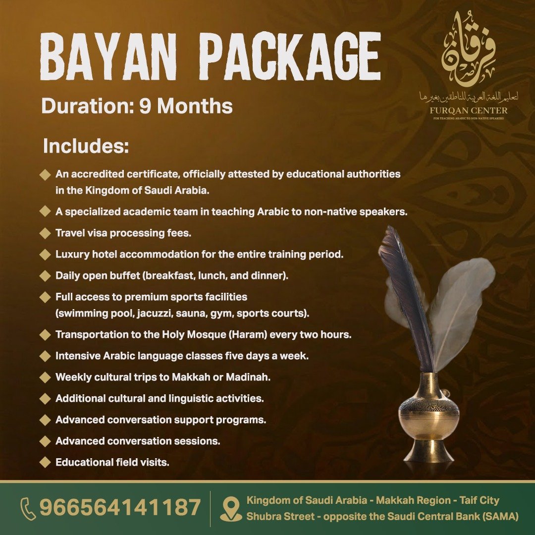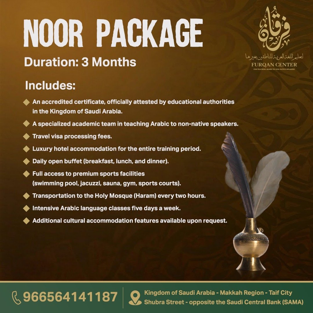 Your golden opportunity to learn Arabic in the heart of Mecca and Medina! Furqan Program: Join the world's leading program for teaching Arabic to non-native speakers — offered in the holiest places on earth.